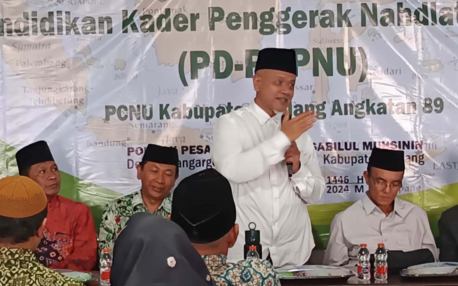 Disampaikan dalam sambutannya, Gus Nahdlil Khoir selaku ketua MWCNU menyampaikan bahwa PKPNU ini adalah salah satu dari rangkain kegiatan HSN 2024 yang diharapkan dalam kaderisasi ini, kita ingin memilah bukan hanya yang amaliyah NU, tapi juga menjadi penggerak atau muharrik yang berjuang demi kepentingan ajaran NU, menjadi orang yang disiapkan menjadi pengurus NU.