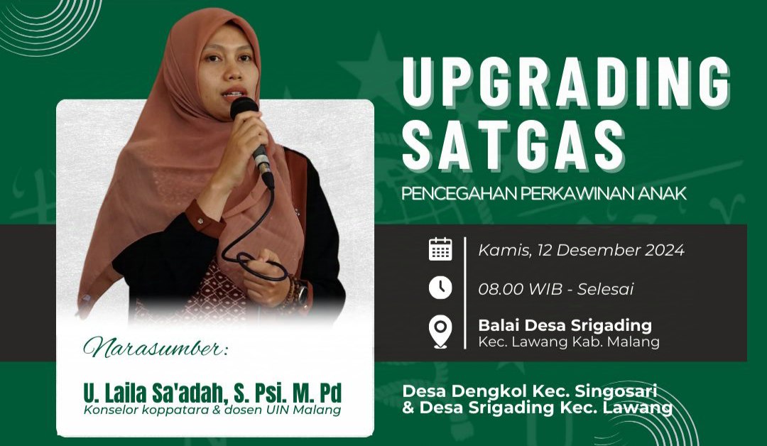NUMALANG.ID, Upgrading Satgas Pencegahan Perkawinan Anak yang digelar di Desa Srigading berlangsung dengan penuh antusias. Acara ini dibuka langsung oleh Kepala Desa Srigading Hadori, yang dalam sambutannya menyoroti pentingnya peran desa dalam mencegah perkawinan anak.