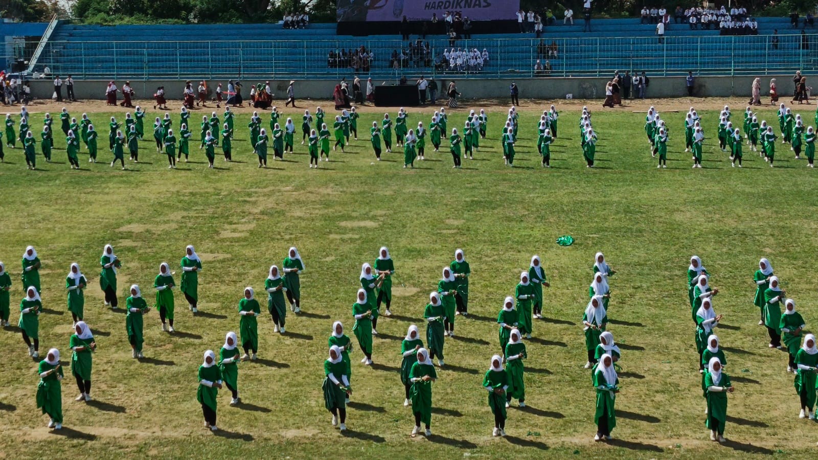 Upacara Hardiknas tahun ini memiliki sejumlah keunikan. Selain formasi konfigurasi dari 850 siswa, pasukan drum band dari SD/MI se-Kota Batu juga turut memeriahkan hari yang istimewa ini. Hal yang paling menarik dan mencolok adalah penampilan tari massal yang memukau, dibawakan oleh ratusan pelajar dengan mengenakan kostum serba hijau, warna khas Nahdlatul Ulama (NU). Tarian ini bukan sekadar pertunjukan seni, melainkan juga simbol kehadiran dan peran aktif NU di tengah-tengah kehidupan masyarakat Kota Batu.