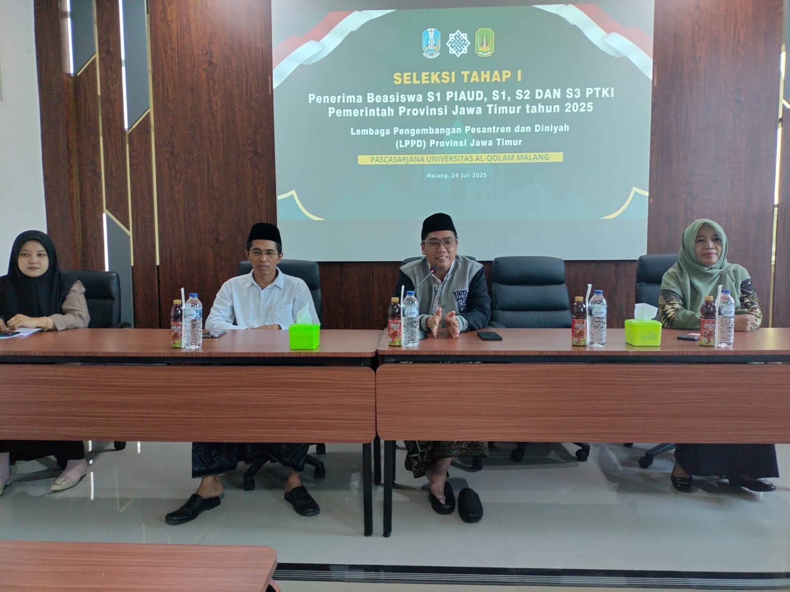 Gondanglegi , NU Malang — Universitas Al-Qolam Gondanglegi, Kabupaten Malang, kembali dipercaya sebagai mitra pelaksana program Beasiswa Madrasah Diniyah (Madin) tahun 2025 yang diselenggarakan oleh Pemerintah Provinsi Jawa Timur. Seleksi tahap pertama berlangsung pada Rabu (24/7/2025) di Gedung Pascasarjana lantai 3 kampus setempat, diikuti oleh 32 peserta.