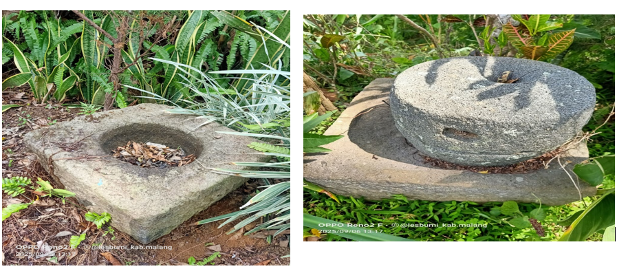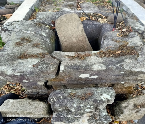 Punden Lumpang Kentheng. Tepatnya di dusun Pakan desa Purworejo kecamatan Ngantang kabupaten Malang. Artefak berbentuk lumpang dan alu yang berada di Kompleks punden kecamatan Ngantang Kabupaten Malang memiliki nama Lingga dan Yoni. Nama Lingga melekat pada alu. Yoni merupakan nama dari lumpang, keduanya terbuat dari batu. Abdul Aziz Ketua LESBUMI, mengatakan Lingga dan Yoni yang berada di Kompleks Punden Lumpang Kentheng bekas alat penumbuk padi pada era awal Islam masuk di Ngantang. “Awal masuknya Islam, Lingga dan Yoni digunakan sebagai penumbuk padi. Lingga dan Yoni ini sering dikisahkan di kisah pewayangan yang tak lepas dari kisah-kisah masa Hindu,” tutur Abdul Aziz, Sabtu (6/09/2025). Artefak Lingga juga bisa diartikan sebagai simbol kejantanan pria. Artefak Lingga juga bisa diartikan sebagai simbol kejantanan pria. Foto/ dokumentasi: LESBUMI PCNU kabupaten Malang. Abdul Aziz menjelaskan, Lingga merupakan gambaran dari laki-laki karena bentuknya yang mirip dengan alat kelamin pria. Lingga juga bisa diartikan sebagai simbol kejantanan pria. Sedangkan Yoni, sambung Abdul Aziz, menggambarkan perempuan karena bentuknya mirip dengan alat kelamin perempuan. Diartikan juga sebaga simbol kesuburan perempuan. “Dalam bahasa Sansekerta nama purusa lingga diartikan sebagai alat kelamin pria.