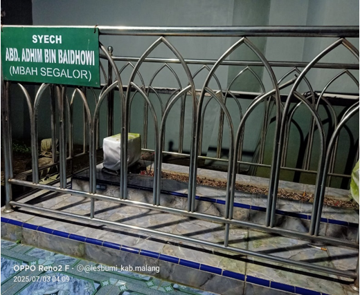 Pada hari Kamis, 3 Juli 2025. Jam; 04:09 Wib. Di Jalan Durian No.20, Prabon II, dusun Kauman desa Kaumrejo, Kecamatan Ngantang Kabupaten Malang, Jawa Timur 65392. Tepatnya di barat masjid Besar Baiturrohman, kami sowan ke makbaroh Syaikh Abdul Adhim bin Baidhowi atau “Eyang Segalor”. Sebagai ciri khas santri dan penjagaan terhadap tradisi masyarakat Ashlussunnah wal-Jamaah ala Nahdlotil Ulama, kami memulainya dengan tawasulan kemudian pembacaan tahlil dan umbul dungo yang kami hadiahkan kepada beliau Syaikh Abdul Adhim bin Baidhowi atau masyarakat setempat populer menyebutnya “Eyang Segalor”.
