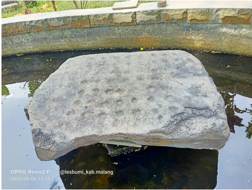 Perjalanan kami berikutnya ke area makbaroh “ki Agung Joyo Suntono”, tepatnya di desa Tulungrejo Gagar kecamatan Ngantang kabupaten Malang, pada Sabtu, 6 September 2025. Jam; 10:21 Wib. Setelah poresesi “tawasulan, tahlil dan umbul dungo” kami haturkan. Ada sesuatu yang menarik pada pojok makbaroh ini, yakni; sekilas tanpa dari kejauhan seperti batu dakon yang umumnya di buat permainan anak-anak. Namun bukan, ini adalah “Batu Pranata Mangsa” atau dalam bahasa keseharian atau umumnya masyarakat saat itu menyebutnya “matematika Jawa atau hitung-hitungan Jawa”. Dari beberapa catatan yang kami gali atau litelatur yang kami dapat, maupun tradisi masyarakat saat itu, menyebut pranata mangsa pada saat ini sudah mengalami beberapa pergeseran akibat perubahan iklim dan kemajuan teknologi. Meski demikian penanggalan ini masih bisa digunakan sebagai acuan dalam memahami teknologi prakiraan cuaca yang semakin maju. Dikutip dari buku “Pranata Mangsa karya Sindhunata”, ada 12 mangsa atau musim yang dikenal dalam pranata mangsa. Seperti sistem penanggalan lainnya, tiap mangsa memiliki bintang yang merupakan pedoman berawal atau berakhirnya suatu mangsa. Setiap mangsa juga memiliki watak dan berpengaruh pada pengolahan tanaman. Meski terkesan mistis “wingit”, hal tersebut merupakan hasil dari pengalaman nyata dan pengamatan rasional para petani di masa lampau atau memiliki “daya titen” yang luar biasa.