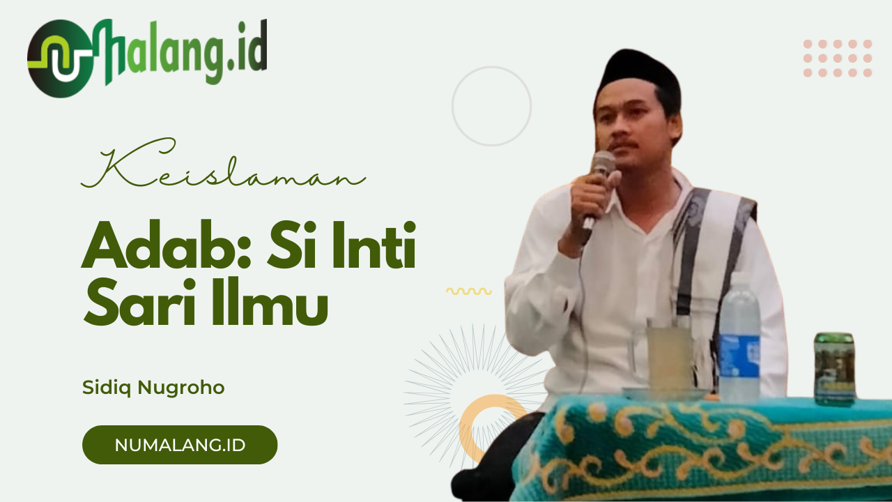 kedudukan adab. Hal ini sebenarnya sejalan dangan hadits yang sering kita baca dalam kitab “arba’in nawawi” yakni hadits tentang datangnya seorang laki-laki tak dikenal (yang ternyata adalah malaikat jibril) yang menanyakan tentang Iman-Islam-Ihsan.