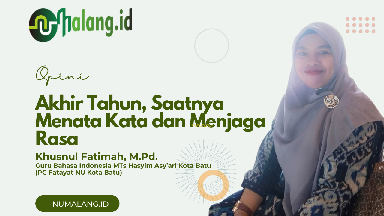 Guru Bahasa Indonesia MTs Hasyim Asy’ari Kota Batu (PC Fatayat NU Kota Batu) NUMALANG.ID.-Menjelang akhir tahun, biasanya kita sibuk menghitung apa yang sudah tercapai dan apa yang belum terlaksana. Kita membuat resolusi, menyusun harapan, dan berjanji pada diri sendiri untuk menjadi pribadi yang lebih baik di tahun yang akan datang. Namun sering kali, evaluasi kita berhenti pada hal-hal yang bersifat lahiriah: karier, pencapaian, target hidup. Padahal ada satu aspek yang jarang disentuh, namun dampaknya sangat besar dalam kehidupan sosial kita, yakni cara bertutur kata.