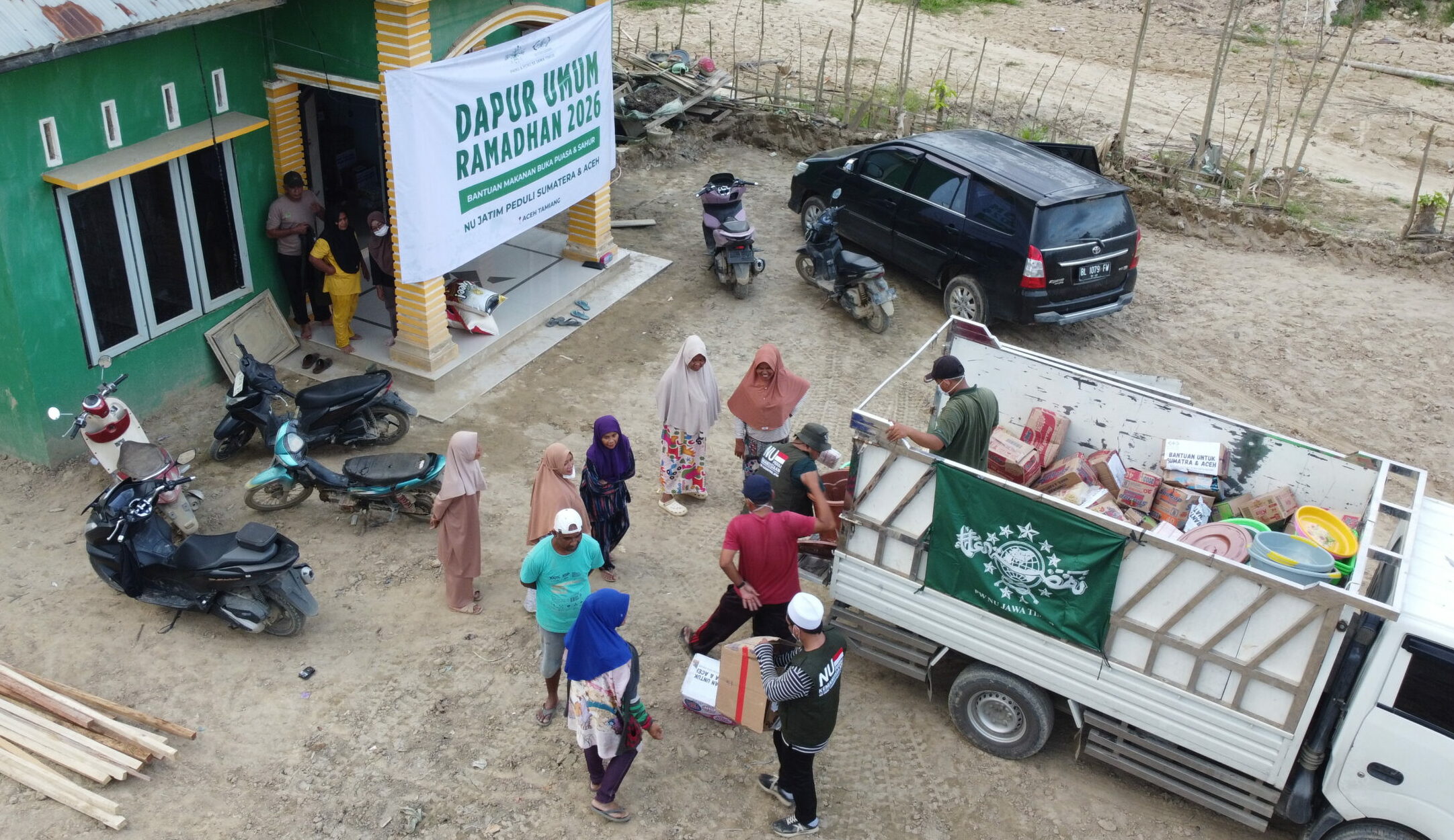 Bantuan disalurkan melalui program Dapur Umum (DU) Ramadhan yang didirikan untuk memenuhi kebutuhan pangan para penyintas. Menu berbuka berupa ayam goreng dan tumis sawi putih dibagikan langsung kepada warga di sekitar lokasi dapur umum.