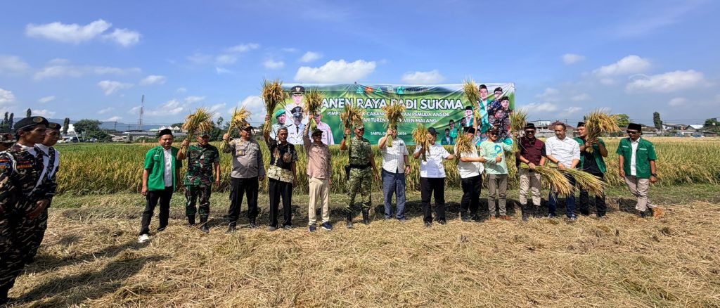 Sementara itu, Ketua PC GP Ansor Kabupaten Malang, Fatkhurrozi, menyampaikan bahwa kegiatan panen raya ini merupakan bagian dari komitmen organisasi dalam mendukung program ketahanan pangan.